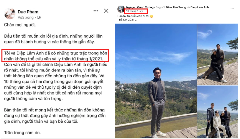 Đức Phạm xác nhận đã ly thân với vợ vào tháng 1/2021 tuy nhiên vào hôm 18/1, cả hai vẫn còn đi du lịch cùng nhà Cường Đô La
