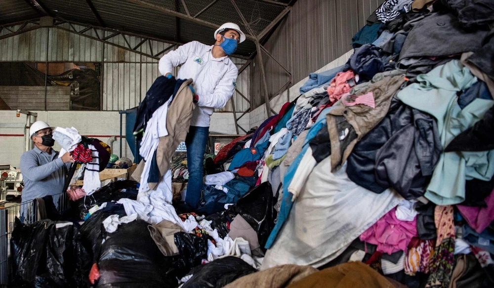 Một nhà máy ở Chile tái chế quần áo bỏ đi thành các tấm cách nhiệt. Ảnh: AFP