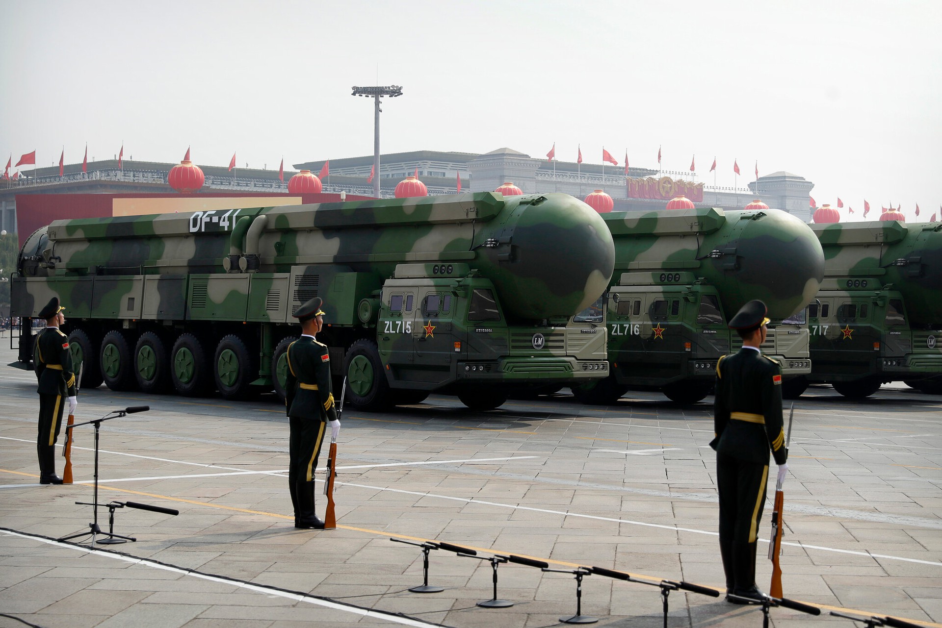 Tên lửa đạn đạo DF-41 của Trung Quốc. Theo báo cáo năm 2021 của Bộ Quốc phòng Mỹ, Trung Quốc sẽ sở hữu ít nhất 1.000 đầu đạn hạt nhân vào năm 2030, cho thấy chương trình hạt nhân của nước này đang tăng tốc nhanh hơn dự đoán trong báo cáo năm 2020. Ảnh: AP.