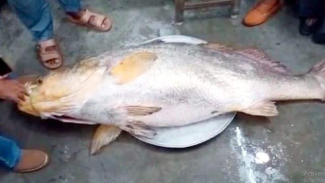 Cá chẽm khổng lồ được bán với giá 1,1 tỉ đồng ở Ấn Độ.