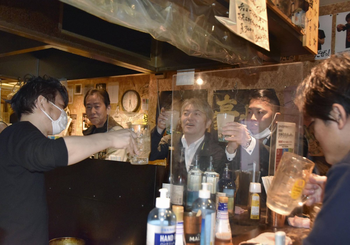 Người dân uống rượu tại một quán bar ở Saitama vào ngày 25/10, sau khi Nhật Bản dỡ bỏ tình trạng khẩn cấp. Ảnh: Kyodo.