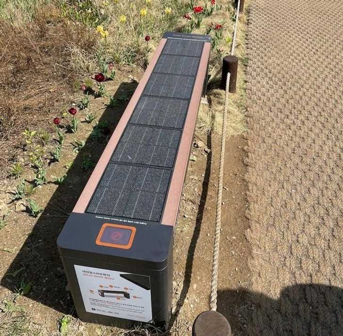 4. Ghế băng chạy bằng năng lượng mặt trời ở Seoul, Hàn Quốc có cả USB và đế sạc không dây.