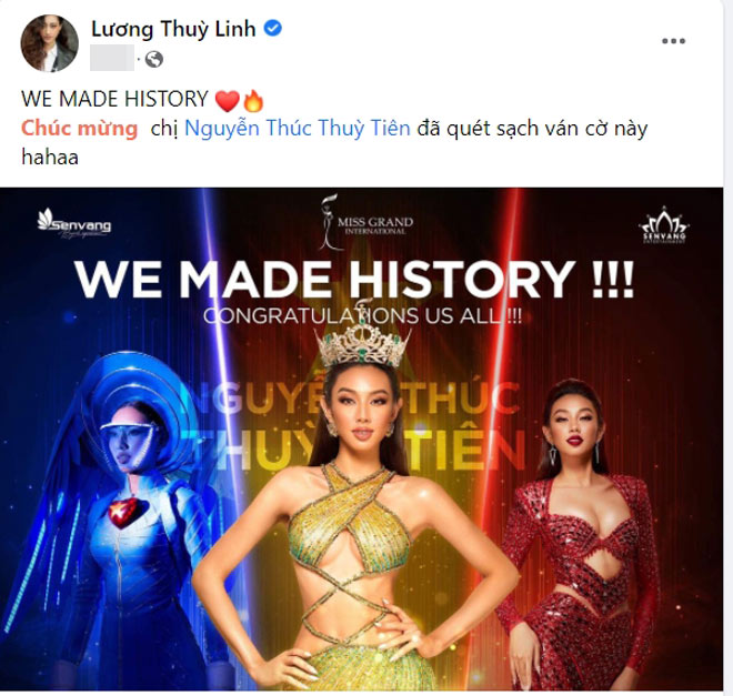 Dàn hoa hậu, Á hậu xúc động trước chiến thắng lịch sử của Thùy Tiên
