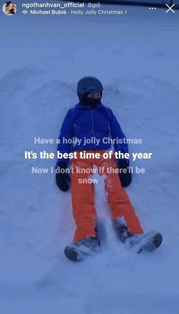 Thời gian gần đây, Ngô Thành Vân và Huy Trần đang rất thoải mái khi công khai chuyện tình cảm. Mới đây, cô vừa chia sẻ những hình ảnh đi trượt tuyết ở Na Uy cùng Huy Trần. Nữ diễn viên còn quay nhiều khoảnh khắc của bạn trai kém tuổi. Khung ảnh đầy tình tứ của cặp đôi khiến dân tình không khỏi thích thú. Người đẹp viết: "Greetings from a cold Norwegian winter. (Tạm dịch: Lời chào từ một mùa đông Na Uy lạnh giá)".