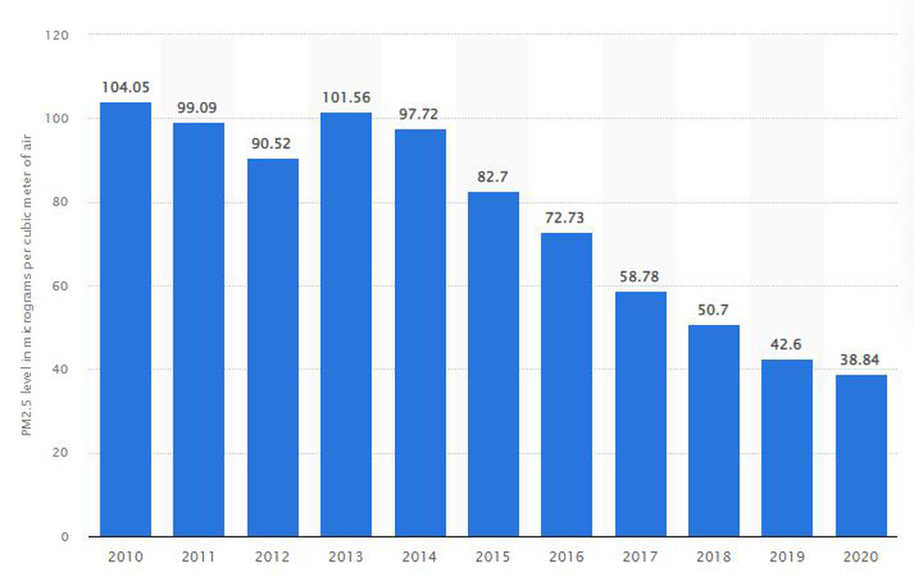 Dù bị coi là một trong những đô thị ô nhiễm bậc nhất thế giới với hơn 20 triệu dân cư trú, chỉ số PM2.5 trung bình năm của Bắc Kinh đã giảm đến 2,6 lần so với mức 101,56 μg/m3 vào năm 2013 - khi ông Tập Cận Bình mới trở thành Chủ tịch Trung Quốc - xuống mức 38,84 μg/m3 vào năm 2020.