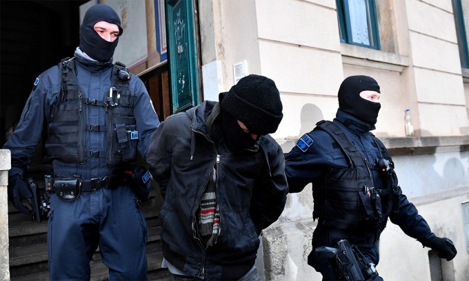 Cảnh sát Đức bắt nghi phạm tham gia âm mưu ám sát thủ hiến bang Sachsen trong cuộc đột kích ở Dresden ngày 15/12. Ảnh: Reuters.