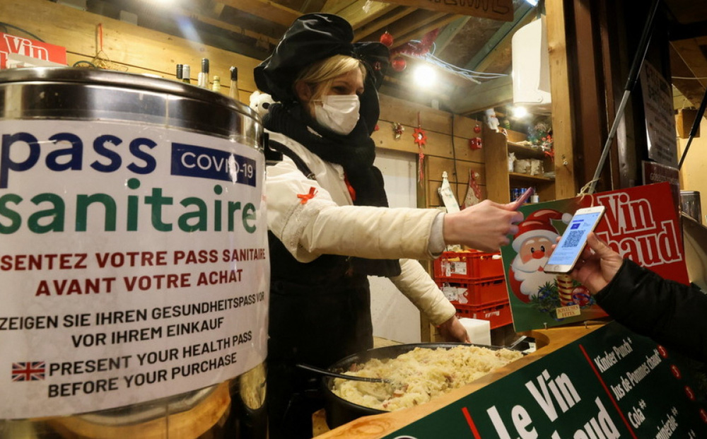 Được giới thiệu hồi mùa hè, hệ thống “thẻ thông hành y tế” của Pháp yêu cầu người dân xuất trình chứng nhận tiêm chủng hoặc xét nghiệm âm tính với SARS-CoV-2 để vào các quán bar, nhà hàng, trung tâm mua sắm, một số địa điểm công cộng khác hoặc khi đi phương tiện giao thông công cộng. Kể từ tháng 1/2022, tất cả người lớn ở Pháp sẽ cần tiêm mũi tăng cường để thẻ y tế tiếp tục có hiệu lực.