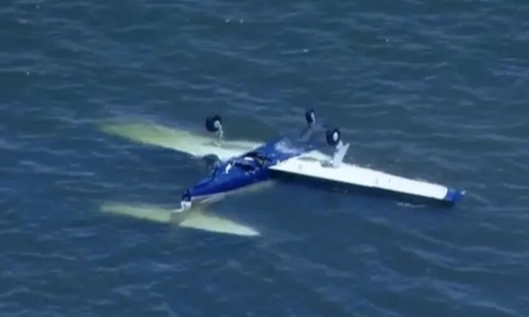 Chiếc máy bay hạng nhẹ rơi ngoài khơi Australia hôm nay. Ảnh: AAP.