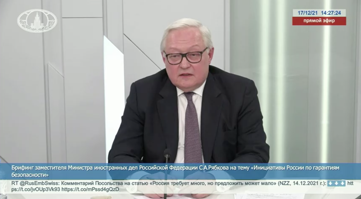 Ông Ryabkov đưa ra tuyên bố này trong một cuộc phỏng vấn với hãng thông tấn Interfax, một ngày sau khi Moscow đệ trình dự thảo tài liệu an ninh yêu cầu NATO từ chối tư cách thành viên của Ukraine cùng các nước thuộc Liên Xô cũ khác và thu hồi quân đội của liên minh ở Trung và Đông Âu. Đây là những tối hậu thư táo bạo gần như chắc chắn sẽ bị Hoa Kỳ và các đồng minh từ chối.