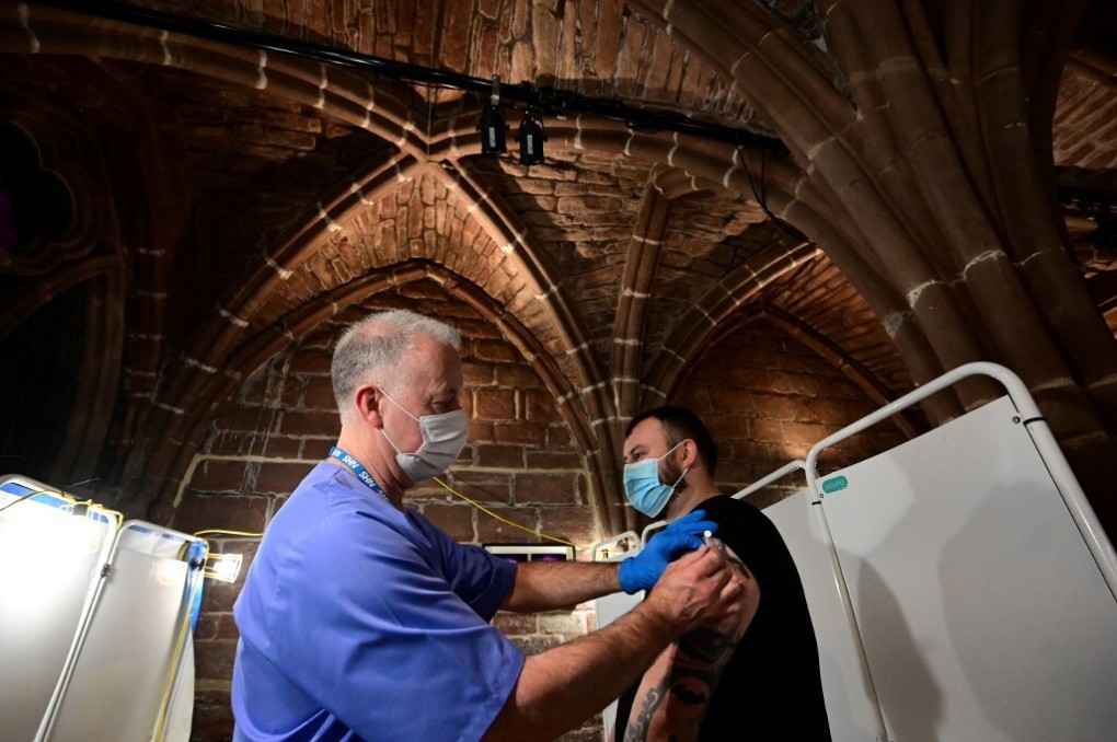 Người dân tiêm vaccine Covid-19 tại điểm tiêm chủng ở thành phố Chester, Anh hôm 16/12. Ảnh: AFP.