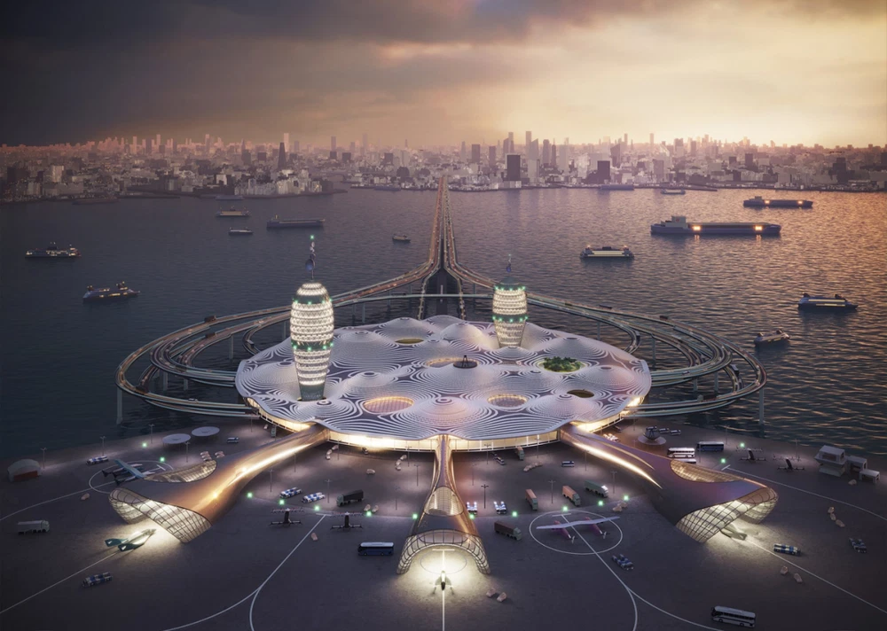 Một cảng vũ trụ được xây dựng trên một hòn đảo nổi ngoài vịnh Tokyo, với bối cảnh là những tòa nhà chọc trời của thủ đô Nhật Bản. Công trình kiến trúc này được thiết kế để đưa du khách tham gia các chuyến du lịch trong ngày vào vũ trụ, nơi họ sẽ có thể nhìn thấy phần mái khổng lồ của tòa nhà, cũng như nhìn lướt qua độ cong của Trái đất và trải nghiệm cảm giác không trọng lực.