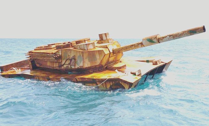 Mô hình xe tăng ban đầu được các công nhân trên một giàn khoan phát hiện ngoài khơi vùng biển Natuna. Các công nhân đã chụp lại ảnh và chia sẻ trên mạng xã hội và nhận được sự quan tâm đặc biệt.