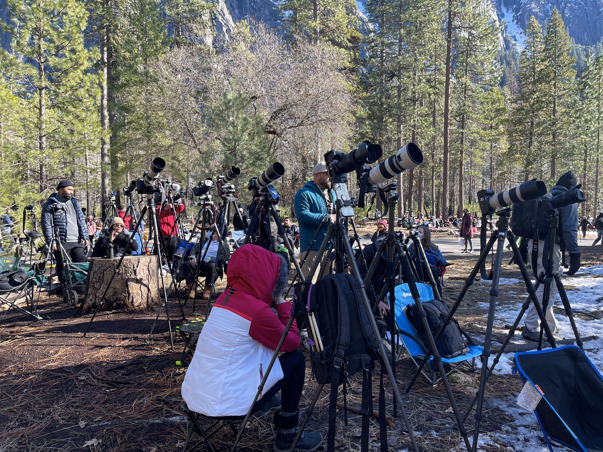 Hẳn ai đó có thể đã nghe tới hiện tượng thác lửa hình đuôi ngựa ở công viên quốc gia Yosemite, California nhưng được chứng kiến cảnh tượng siêu hiếm gặp này và tiến xa nữa là ghi lại khoảnh khắc đó thì ngoài sự nỗ lực không nhỏ còn cần rất nhiều may mắn. Hiện tượng này chỉ xảy ra vào cuối tháng 2. Ngọn thác Đuôi Ngựa (Horsetail Falls) - hình thành do nước băng tan chảy xuống từ độ cao 480 m - trong một khoảnh khắc ngắn sẽ đổi màu sang đỏ hồng như ánh lửa khi những tia nắng hoàng hôn chiếu vào. Tôi và nhóm bạn khởi hành từ San Jose, bang California lúc 4h và mất khoảng 6 giờ mới đặt chân tới thác Đuôi Ngựa. Ngọn thác ở trên núi cao hàng trăm mét nhưng bị rừng cây che khuất nên để tìm được vị trí quan sát ưng ý và đặt máy ảnh cũng không dễ. Ảnh: Hai Nguyễn.