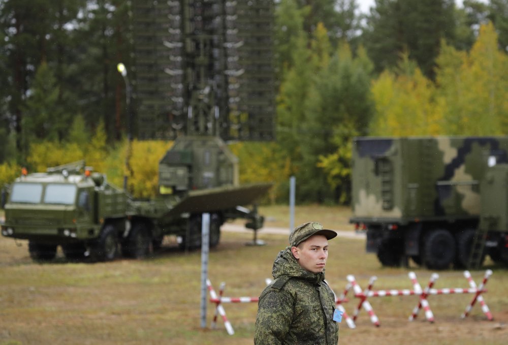 Binh sĩ Nga gác trước radar triển khai cho cuộc tập trận năm 2018 với sự góp mặt của binh sĩ Trung Quốc. Ảnh: AP