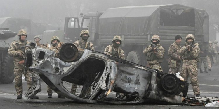 Liên minh quân sự do Nga dẫn đầu đưa binh sĩ đến Kazakhstan để giúp nước này lập lại ổn định. Ảnh Reuters.