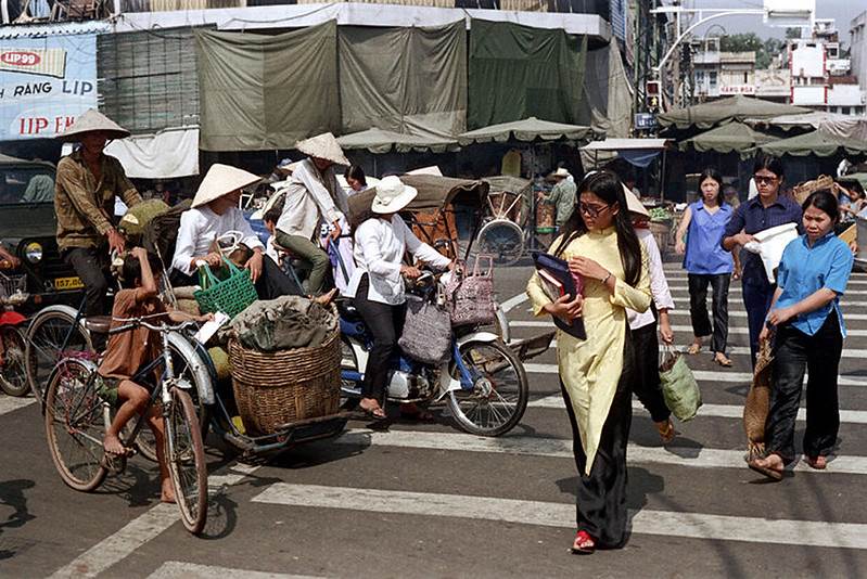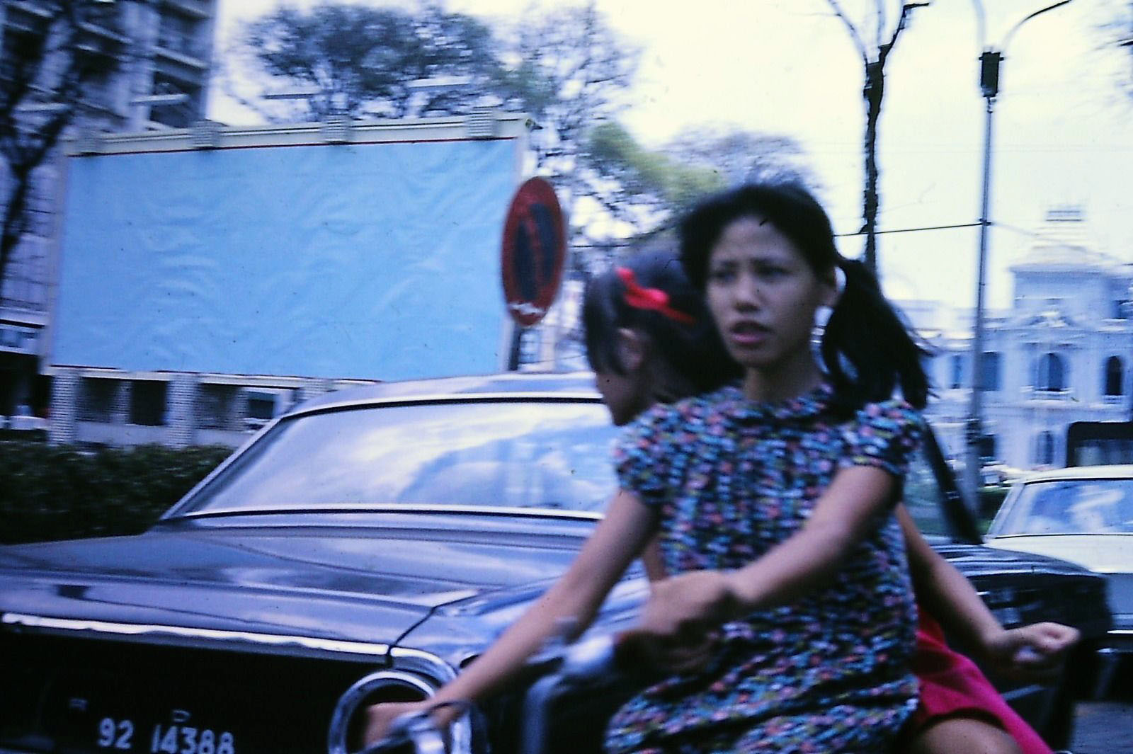 Cô gái với áo dài trắng láy xe trên đường phố Sài Gòn năm 1973