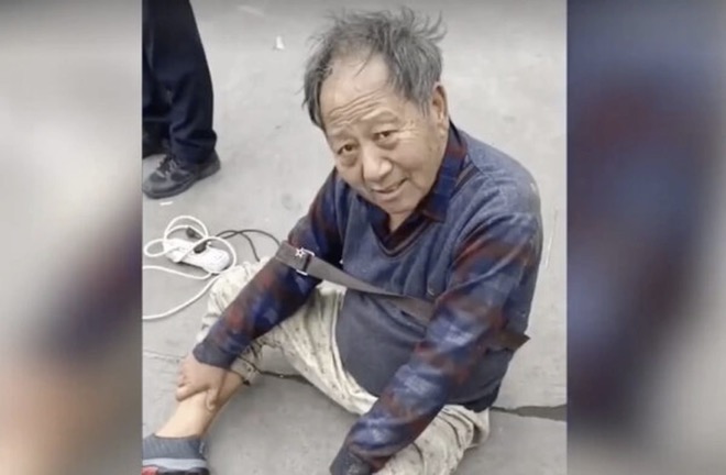 Người đàn ông có tuổi này trông tiều tụy, chỉ mặc quần áo mỏng. Theo người dân địa phương, người đàn ông này đã đi lang thang xin ăn trong một thời gian dài.