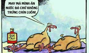 - Ăn nhằm ǵ! - Ông thứ ba mới rề rà - Ở nước tôi, họ toàn phải đập nước đá nhỏ ra cho gà ăn để nó không đẻ trứng gà luộc đấy!