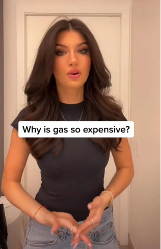 Vài ngày sau, Ellie Zeiler, một sao nữ 18 tuổi với hơn 10 triệu người theo dơi trên TikTok, đă đăng một video trong đó cô trả lời câu hỏi: "Tại sao xăng lại đắt như vậy?"