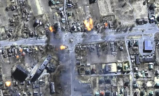 Thành phố Chernihiv tan hoang sau các cuộc không kích và pháo kích của Nga. Ảnh: Maxar.