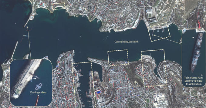 Hải quân Nga dường như đã bố trí hai chuồng cá heo ở lối vào cảng Sevastopol. Các chuồng này được đưa tới đây vào khoảng tháng hai, gần thời điểm chiến dịch quân sự đặc biệt tại Ukraine bắt đầu, chuyên gia về tàu ngầm và hệ thống dưới nước H. I. Sutton nhận định ngày 27/4 sau khi phân tích ảnh vệ tinh.