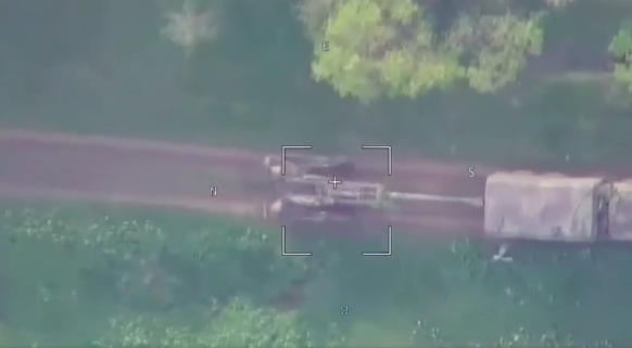 Video cho thấy máy bay không người lái (UAV) của Nga tấn công các khẩu đội pháo Mỹ ở Ukraine. Nguồn News Week/Bộ Quốc phòng Nga.