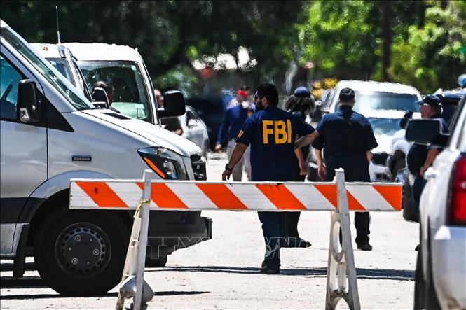 Nhân viên Cục Điều tra Liên bang được triển khai tại hiện trường vụ xả súng ở bang Texas, Mỹ, ngày 25/5/2022. Ảnh: AFP