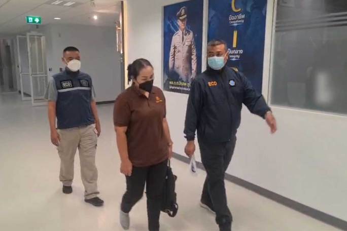 Bà Charoensri Thongkham bị áp giải về văn phòng Đơn vị đàn áp tội phạm kinh tế Thái Lan. Ảnh: The Bangkok Post