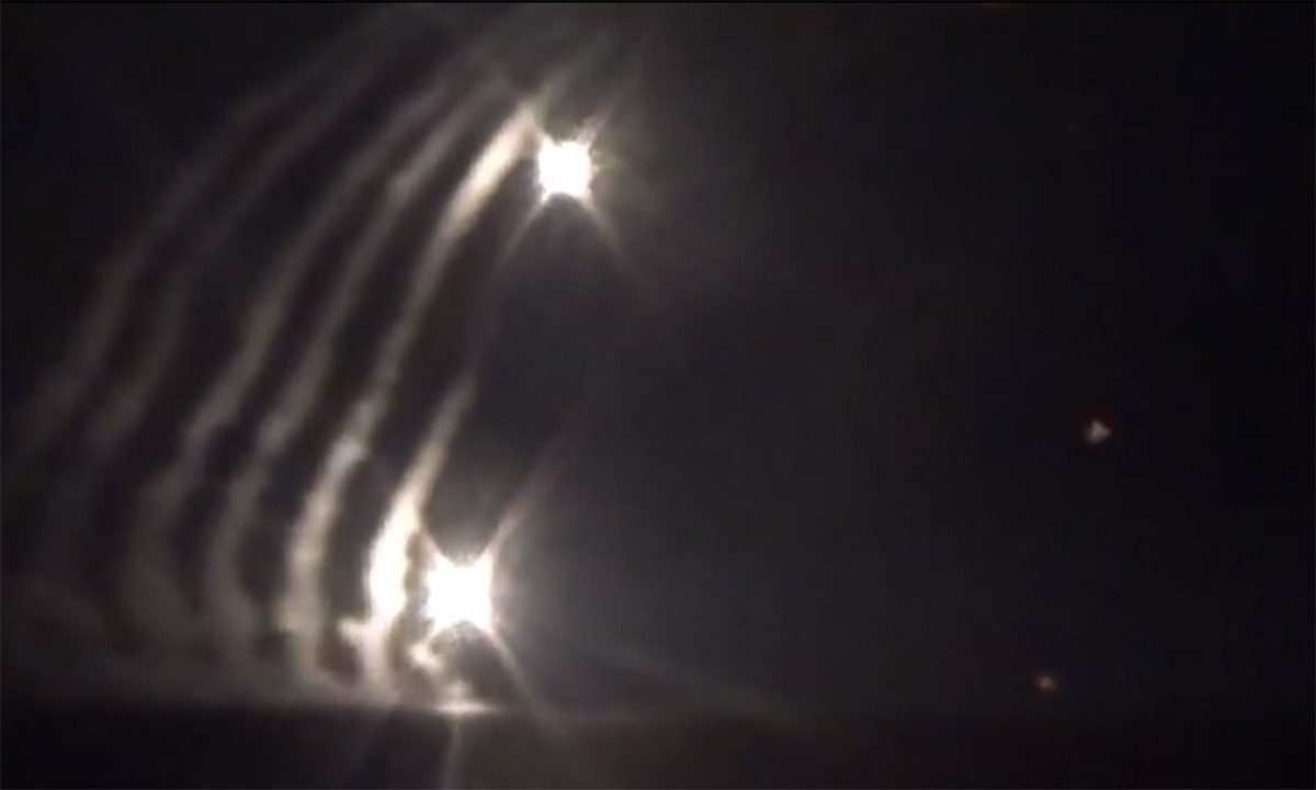 Video được công bố cho thấy một chiến hạm Nga, có thể là tàu ngầm, phóng ít nhất 7 tên lửa hành trình Kalibr từ biển trong đêm.