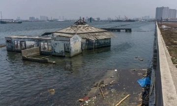 Khu vực ven biển Muara Baru ở Jakarta, Indonesia đã chìm khoảng 3-4 m so với mực nước biển vì sụt lún đất. Ảnh: CNA.