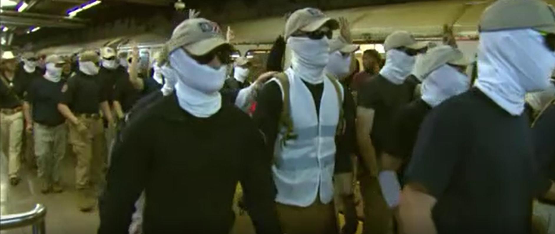 CBS Boston đưa tin người đàn ông che mặt, một số mang khiên và cờ cảnh sát, là một phần của nhóm người da trắng Patriot Front. Những người này còn được cho là đã lên chuyến tàu điện ngầm tại một nhà ga trung tâm thành phố.