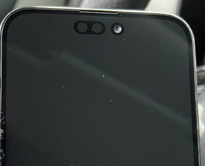 Mới đây, tài khoản Ice Universe đã đăng tải hình ảnh cận cảnh mặt trước của phiên bản iPhone 14 Pro. Có thể thấy, phần màn hình khuyết đỉnh đã được thay thế bằng một màn hình đục lỗ hình chữ "i" nằm ngang. Phía dưới phần đục lỗ là vị trí đặt của cảm biến nhận diện khuôn mặt Face ID cũng như camera selfie.