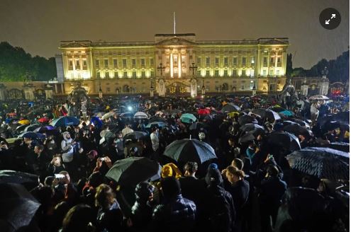 Người dân tập trung bên ngoài Cung điện Buckingham sau thông báo về sự ra đi của Nữ hoàng Elizabeth II. Ảnh: AP.