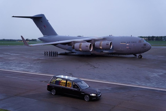 Chiều tối 13/9, linh cữu của Nữ hoàng Elizabeth đã di chuyển từ nhà thờ St.Giles tới sân bay Edinburgh, Scotland. Linh cữu được đưa lên máy bay vận tải quân sự C-17 Globemaster mang số hiệu ZZ177 của không quân hoàng gia Anh. Đây cũng chính là máy bay mà Anh đã dùng để sơ tán người dân khỏi Afghanistan năm ngoái.