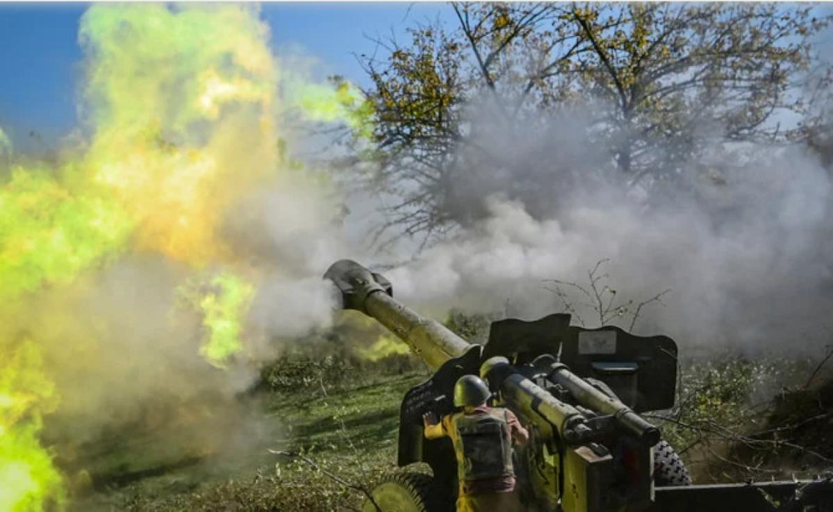 Một binh sĩ Armenia đang nã pháo vào chiến tuyến trong cuộc giao tranh đang diễn ra giữa các lực lượng Armenia và Azerbaijan tại khu vực Nagorno-Karabakh. Ảnh: AFP