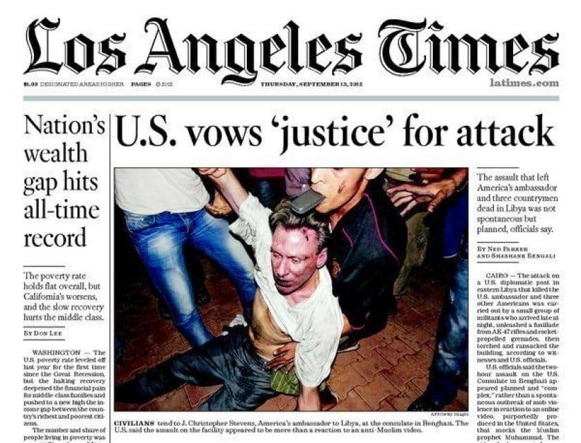 Cho tới khi công chúng Mỹ biết được vụ tấn công tại Benghazi diễn ra như thế nào thì đã quá muộn. Vị đại sứ Mỹ đã tử nạn và kinh hoàng hơn, hình ảnh của ông với thân thể tím tái, trầy xước đang bị đám đông quây lại trong giờ phút sinh tử đã tràn ngập khắp mặt báo thế giới.