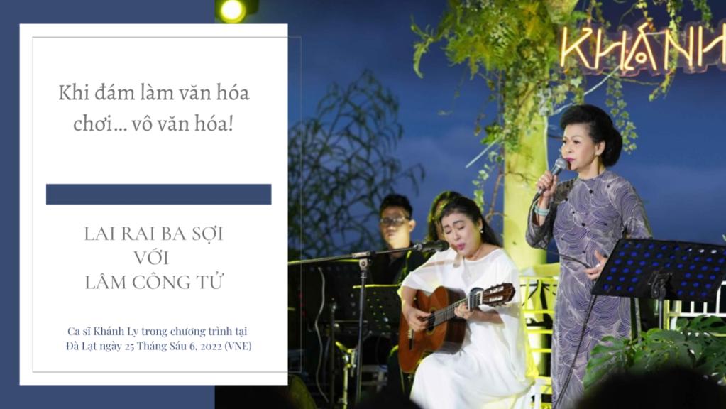 "gây giật" được cả một nhóm người. Về tên tuổi thì bà Khánh Ly đau khổ. Về tiền bạc thì cả một ê kíp tổ chức đêm biểu diễn của bà mất trắng tiền tươi thóc thật (hơn 1 tỷ rưởi VN đồng). Hơn 90 con người lặn lội mời mọc rủ rê cho tới lên chương trình, mua sắm đủ thứ, tới việc ký hợp đồng, thuê chuyên viên các loại để giờ đây cái Nhà hát có lịch sử hàng trăm năm nói cắt điện để sửa chữa thì làm sao mà không tức được?