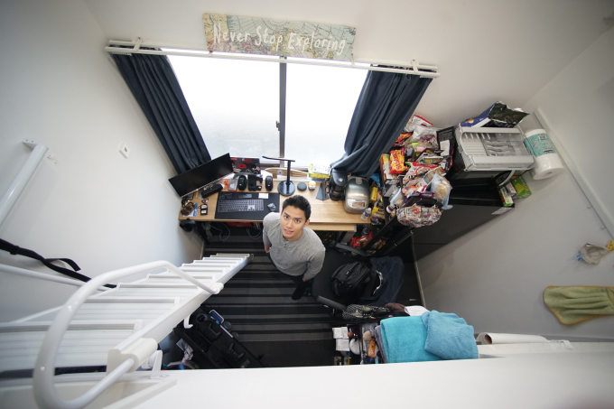 Một sinh viên bên trong căn hộ siêu nhỏ của mình tại thủ đô Tokyo, Nhật Bản, năm 2019. Ảnh: Japan Times.