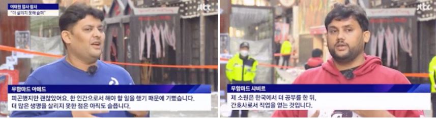 Hai người kể lại về khoảnh khắc ám ảnh tại Itaewon. Ảnh: JTBC.