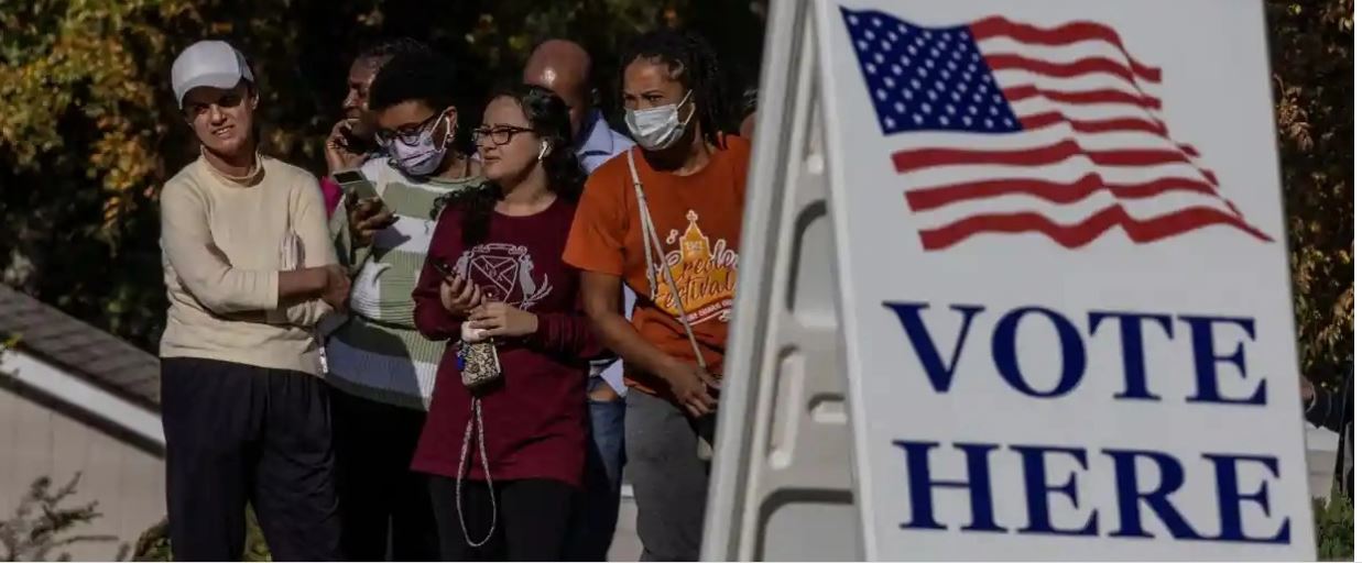 Cử tri xếp hàng chờ bỏ phiếu sớm ở Mableton, Georgia, ngày 4/11. Ảnh: Reuters.