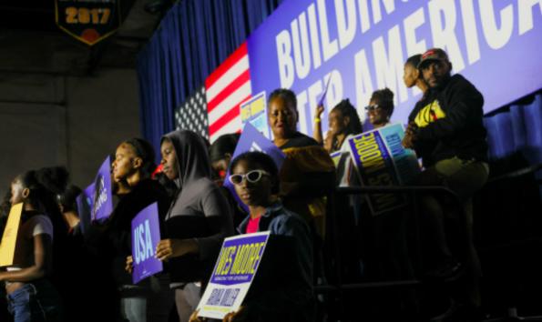 Người ủng hộ đảng Dân chủ tham gia mít tinh ở Maryland, vào ngày 7/11. Ảnh: Reuters.