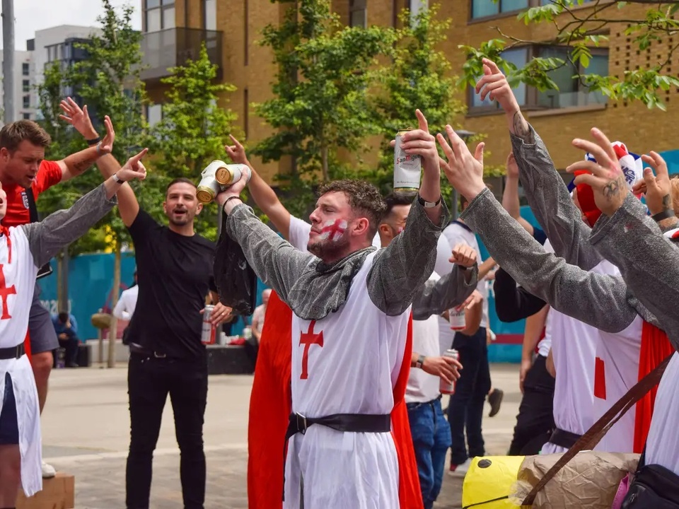 Cổ động viên Anh mặc trang phục như hiệp sĩ thập tự chinh tại EURO 2020. Ảnh: LightRocket.