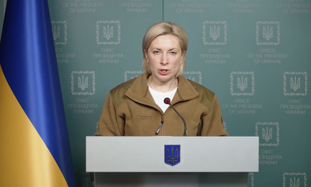 Phó thủ tướng Iryna Vereshchuk trong bài phát biểu qua video hôm 7/3. Ảnh: CNN.
