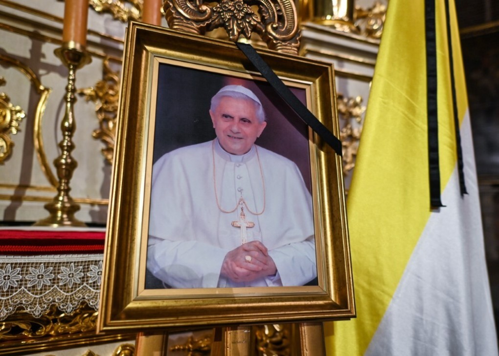 Di ảnh cựu giáo hoàng Benedict XVI tại Vương cung thánh đường Corpus Christi ở Krakow, Ba Lan, hôm 3/1. Ảnh: AFP.