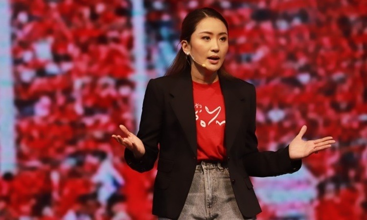 Cô Paetongtarn Shinawatra trong sự kiện của đảng Pheu Thai ở tỉnh Samut Prakan, Thái Lan, hồi tháng 5/2022. Ảnh: AFP.