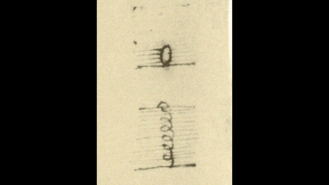 Bản vẽ của Leonardo da Vinci khi ông nhận thấy sự di chuyển kì lạ của bong bóng khí trong nước. Ảnh: University of Sevilla.