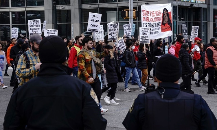 Đoàn người biểu tình tuần hành ở New York, Atlanta, Boston, Baltimore, Los Angeles, San Francisco, Portland cùng hàng loạt thành phố khác trên khắp nước Mỹ hôm 28/1, giương cao những tấm biển ghi tên Tyre Nichol và kêu gọi chấm dứt hành vi lạm quyền của cảnh sát.