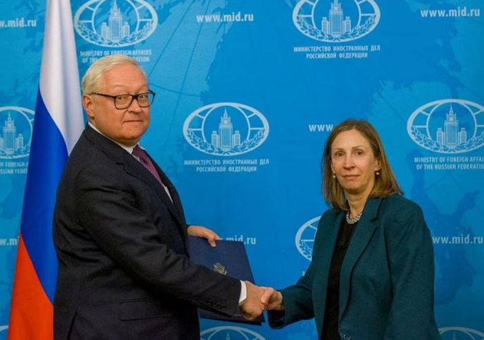 Thứ trưởng Ngoại giao Nga Sergei Ryabkov và Đại sứ Mỹ tại Moscow Lynne Tracy. Ảnh: Reuters