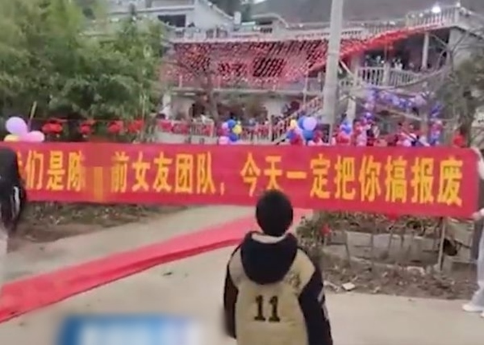 Anh Trần ở Chiêu Thông, Vân Nam, Trung Quốc tổ chức đám cưới vào ngày 6/2 vừa qua. Ngày đại hỷ đang diễn ra thì bất ngờ một nhóm các cô gái trẻ xông đến, trên tay cầm băng rôn màu đỏ có dòng chữ: "Chúng tôi là đoàn đội bạn gái cũ của Trần X, ngày hôm nay chúng tôi nhất định sẽ cho anh ta đẹp mặt". Cứ như vậy, các cô gái chặn con đường duy nhất để đi qua địa điểm tổ chức đám cưới.