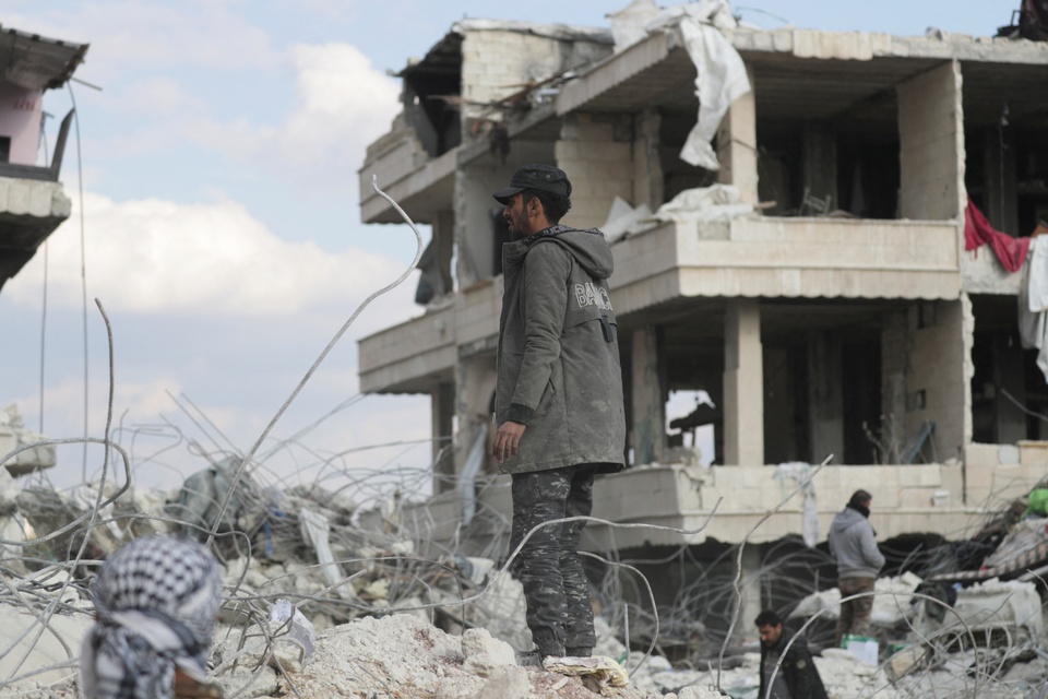Tòa nhà đổ nát ở Jandaris, Syria hôm 11/2. Ảnh: Reuters.